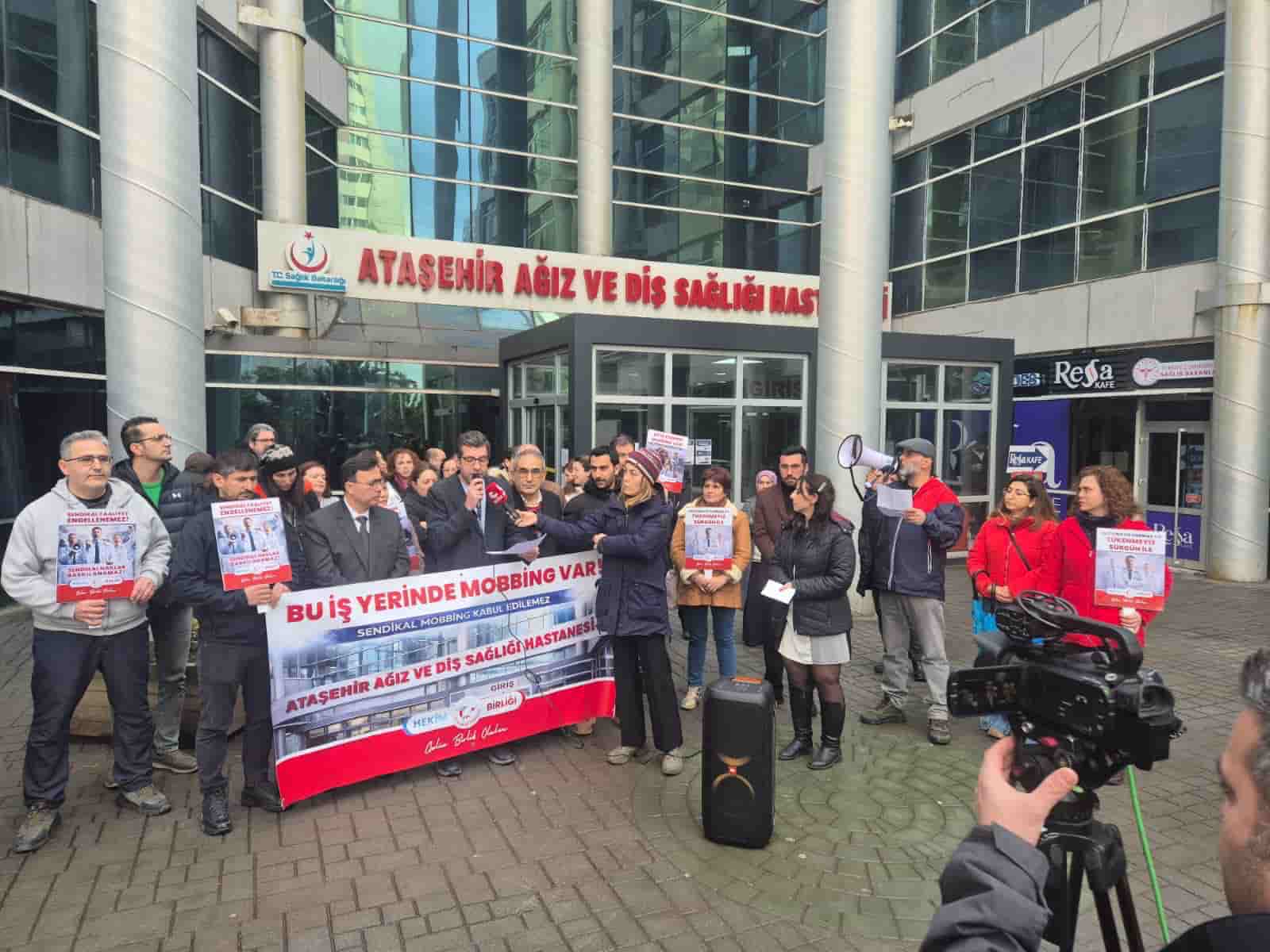 İstanbul Ataşehir Ağız ve Diş Sağlığı Hastanesi önünde düzenlenen basın açıklamasına sağlık iş kolundaki sendikalar, Hekim Birliği Genel Başkan Yardımcısı Op. Dr. Çağlar Yıldırım ve Hekim Birliği İstanbul Şube Yönetimi’nin katılımıyla gerçekleşti. Hekim Birliği yöneticileri tarafından yapılan açıklamada şu ifadelere yer verildi, “Bugün burada; emeğiyle, liyakatiyle ve onuruyla görev yapan hekimlerin, sistematik bir baskı ve yıldırma politikasıyla karşı karşıya kalmasına “DUR” demek için toplandık. Hekim Birliği İstanbul Şube Yönetim Kurulu üyemiz Dt. Janat Düzgün, son dönemde ardı arkası kesilmeyen, hiçbir hukuki dayanağı olmayan mesnetsiz soruşturmaların ve nihayetinde “cezalandırma” amacı taşıyan usulsüz bir tayin kararının hedefi olmuştur”